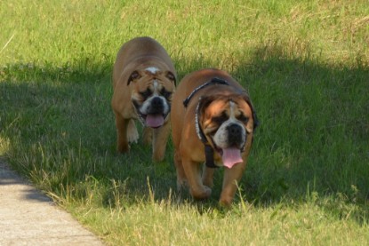 Die Beiden mussten erst über ein Jahr alt werden, bevor man beim Spazieren beide gleichzeitig von der Leine lassen konnte. Einen an der Leine entfernte sich der andere nie weiter als fünf Meter - beide ab = Hunde weg.